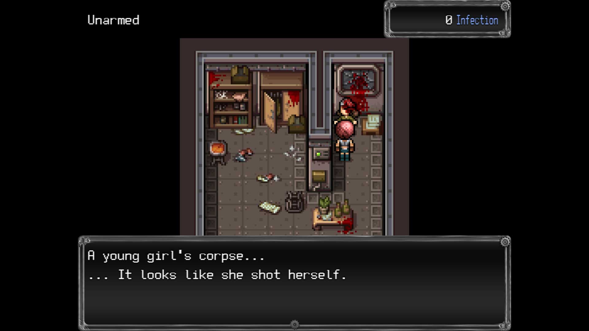 Go from point “A” to point “B”, and ration your every resource. Items are rare and valuable, especially ammunition. Enemies are fought in real time, but should be avoided if possible. Losing a close-quarters struggle to an enemy will result in “infection”, if you get too much of it — it’s game over.