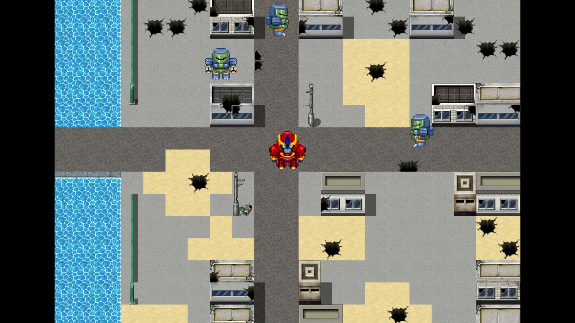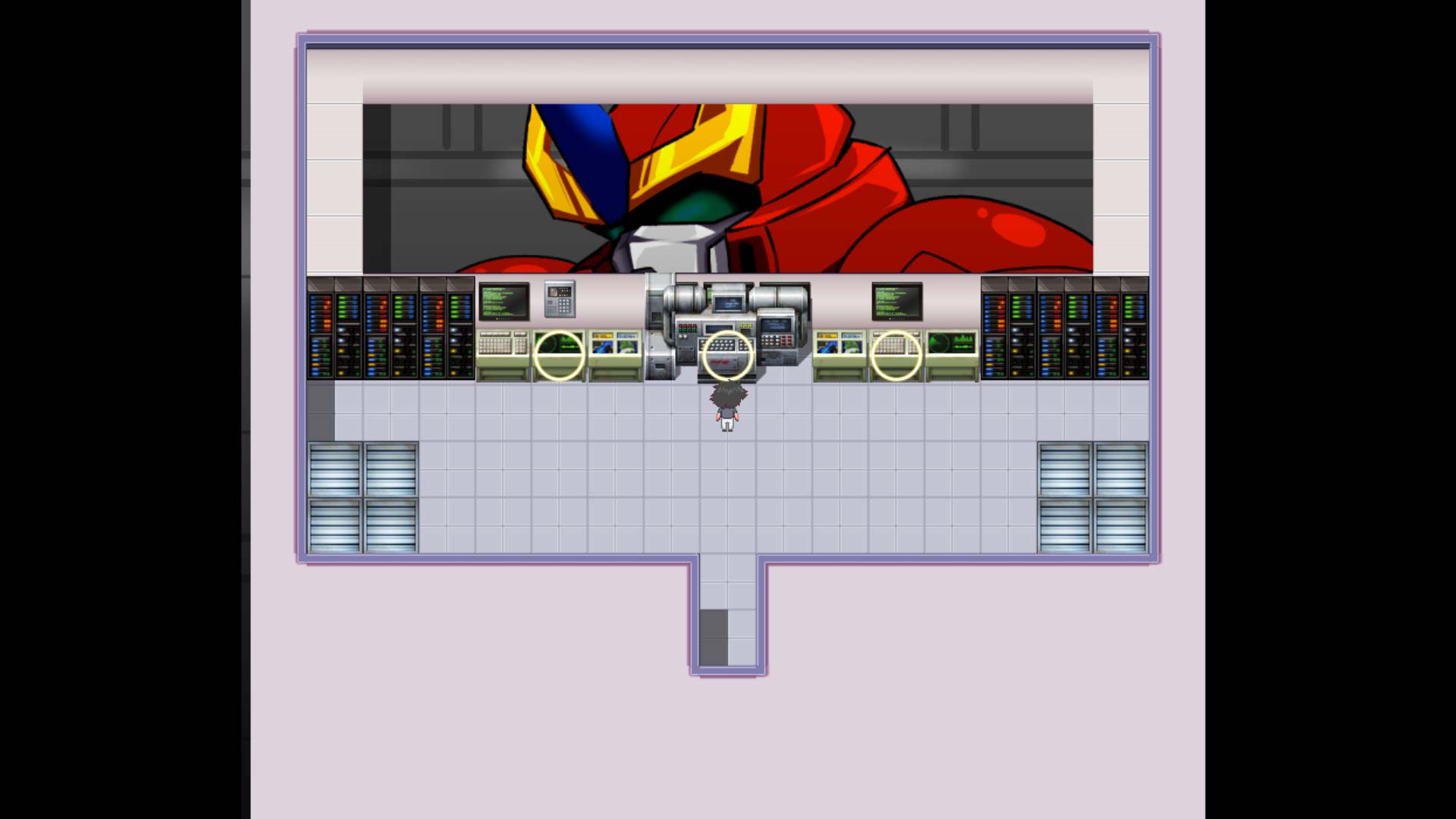The titlescreen looks promising (for an RPGMaker screen). The artwork is spot-on, and the interface stylistically sci-fi. From “Options”, you can set audio and movement preferences. There are no display settings — but you can fullscreen the application with the “F4” key. Unfortunately, the application is not in the correct aspect ratio to fill a modern screen. The sprites were an immediate disappointment — stereotypical, repetitive RPGMaker sprites, combined with out-of-place, pixelated mechas. The character sprites clearly don’t belong.