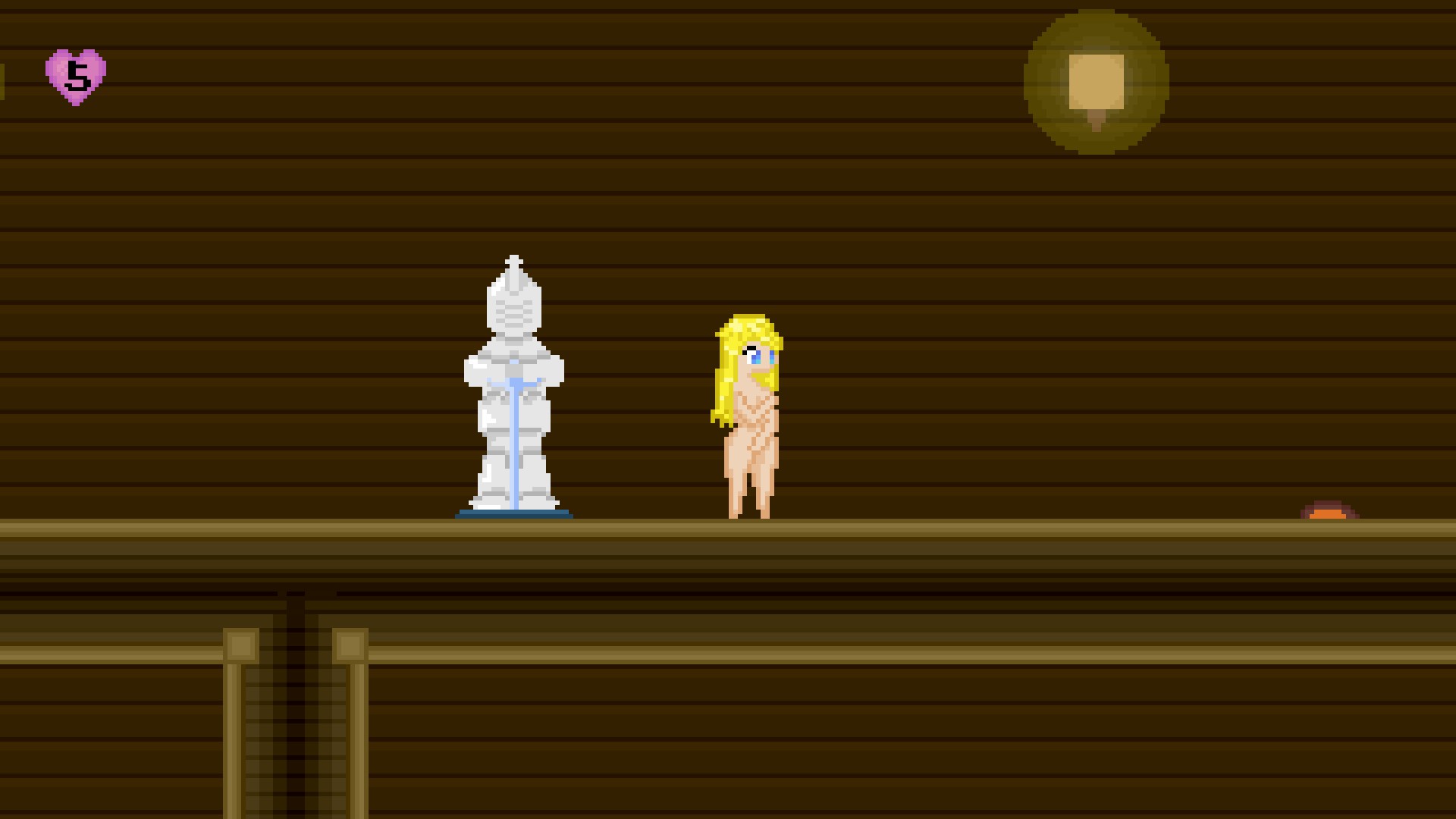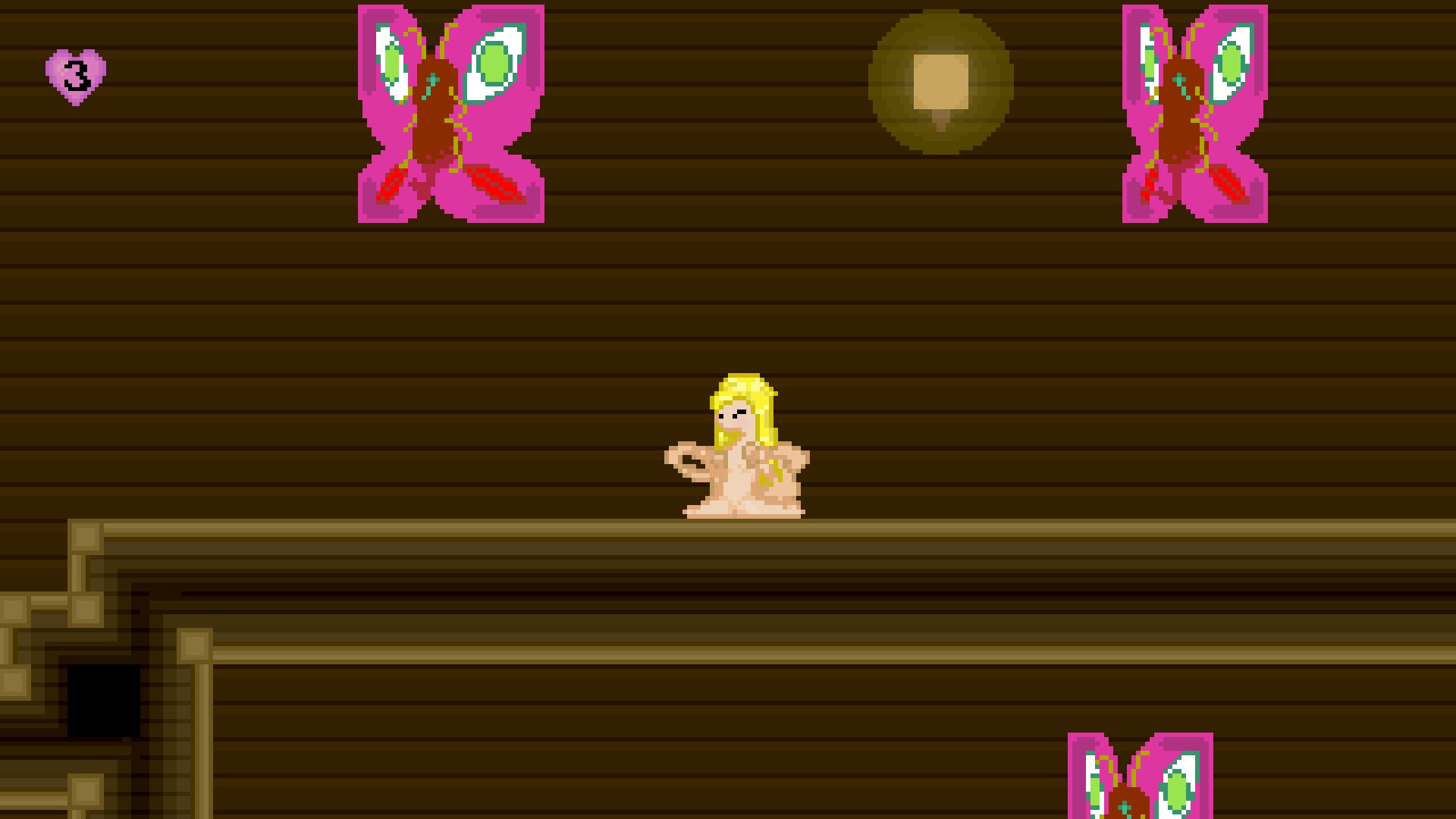 Avoid enemies and collect keys and texts. There is no “pause” button, which I think should be a staple for platformers and lewd games alike. Every touched enemy will result in a sex scene and a lost hitpoint. It’s cool first time, but lack of interactivity and variety makes sexy-time tedious. Once you lose all of your hitpoints, you’ll be respawned at the nearest checkpoint with one hitpoint. If you lose all of your hitpoints again, you’ll be taken back to the beginning of the stage.